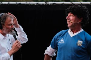 La pièce de théâtre Diego et Moi nous parle d’un enfant rêveur et de sa famille exilée au Mexique, d’un match de football, celui de « la main de Dieu » et du « but du siècle ». Il nous parle aussi d’une « mère courage », de l’empathie, de l’amour, d’être ici venant d’ailleurs et de la guerre. A travers la musique, le jeu, le chant et la danse, comédiens et musiciens nous embarquent dans l’histoire de vie d’un petit garçon et sa famille, au stade Azteca, lors de ce match mythique.